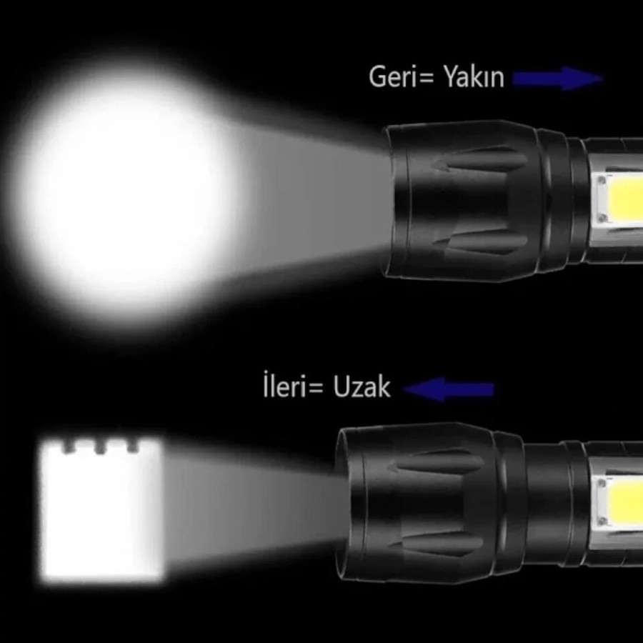 Çift Aydınlatmalı USB Şarjlı Led El Feneri